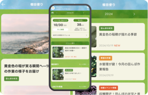 田んぼの購入からお米の納品まで、すべてスマホで完結。1年間、手軽に田んぼオーナーになることができます!